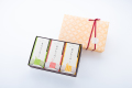 TOP菓心 なごみ 菓心なごみ3箱セット 価格: ¥2,500 (税込) 販売期間: 味選択1: 選択してください 和三盆 抹茶 紫芋 きなこ 味選択2: 選択してください 和三盆 抹茶 紫芋 きなこ 味選択3: 選択してください 和三盆 抹茶 紫芋 きなこ 熨斗: 選択してください 不要 赤熨斗(蝶々結び) 赤熨斗(結び切り) 弔事(仏式) 弔事(神式) 有料袋: 選択してください 不要 ロゴ入り紙袋(ベージュ小)(¥30) 数量: 個 在庫: 在庫あり 在庫 在庫あり 返品についての詳細はこちら 和三盆、抹茶、きなこ、紫芋の中から、お好きなお味を3種類組み合わせて箱に入れ、包装いたします。 通常は画像のようにお紐掛けいたしますが、慶弔の引菓子用にお熨斗もお付けいたします。 ご注文時、備考欄に概要をご記載くださいませ。 推奨袋:ロゴ入り紙袋(ベージュ小)